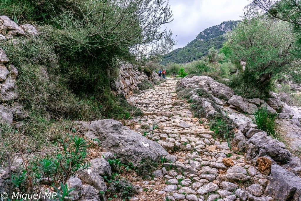 Aquest encara conserva en bon estat una bona part del seu empedrat i es una vertadera lliçó magistral de la feina extraordinària desenvolupada per generacions per traure profit de les dures muntanyes mallorquines. Pugem entre marjades plenes d’oliveres deixant damunt els nostres caps les terrasses del Mirador de Ses Barques. Desprès de superar un portell a l’ombra d’una jove alzina que ens dona la benvinguda a les terres de Bàlitx d’Amunt, arribem a una pista que comunica Es Mirador de Ses Barques amb les cases, just al davant de Ses Barreres de Moncaire.