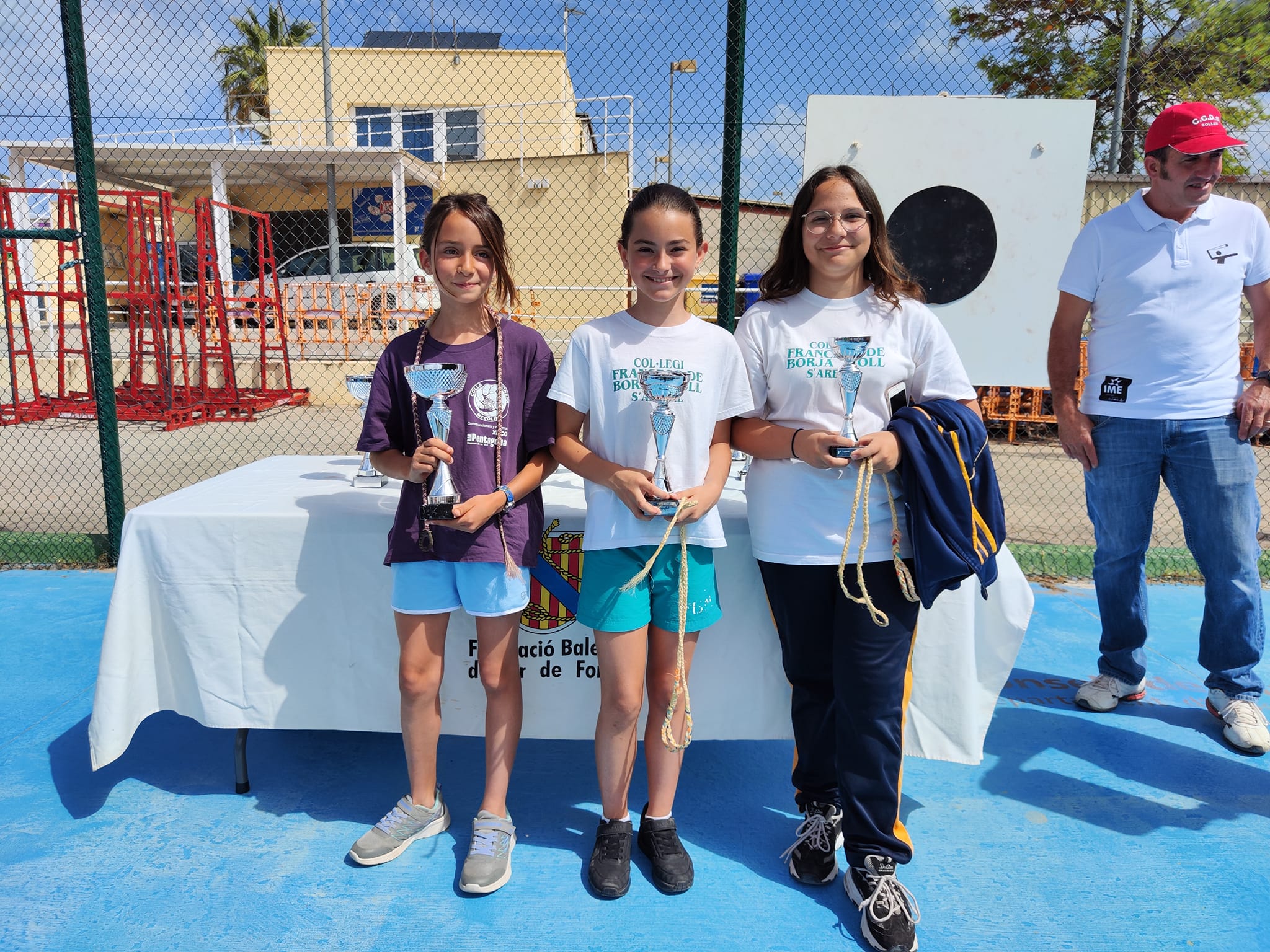 El Poliesportiu Sant Ferran, de Ciutat, acollí dissabte passat, 29 d’abril, a partir de les deu del matí, les grans finals del Campionat de Mallorca Escolar, amb clar domini del Col·legi Borja Moll, el Col·legi la Porciúncula i l’Escola d’Alaró, baix de l’organització de la Federació Balear de Tir de Fona, i el patrocini del Consell de Mallorca, tot perfectament coordinat pels monitors federatius Xisco Amengual i Salvador Maimó, i el Col·legi Arbitral federatiu.
